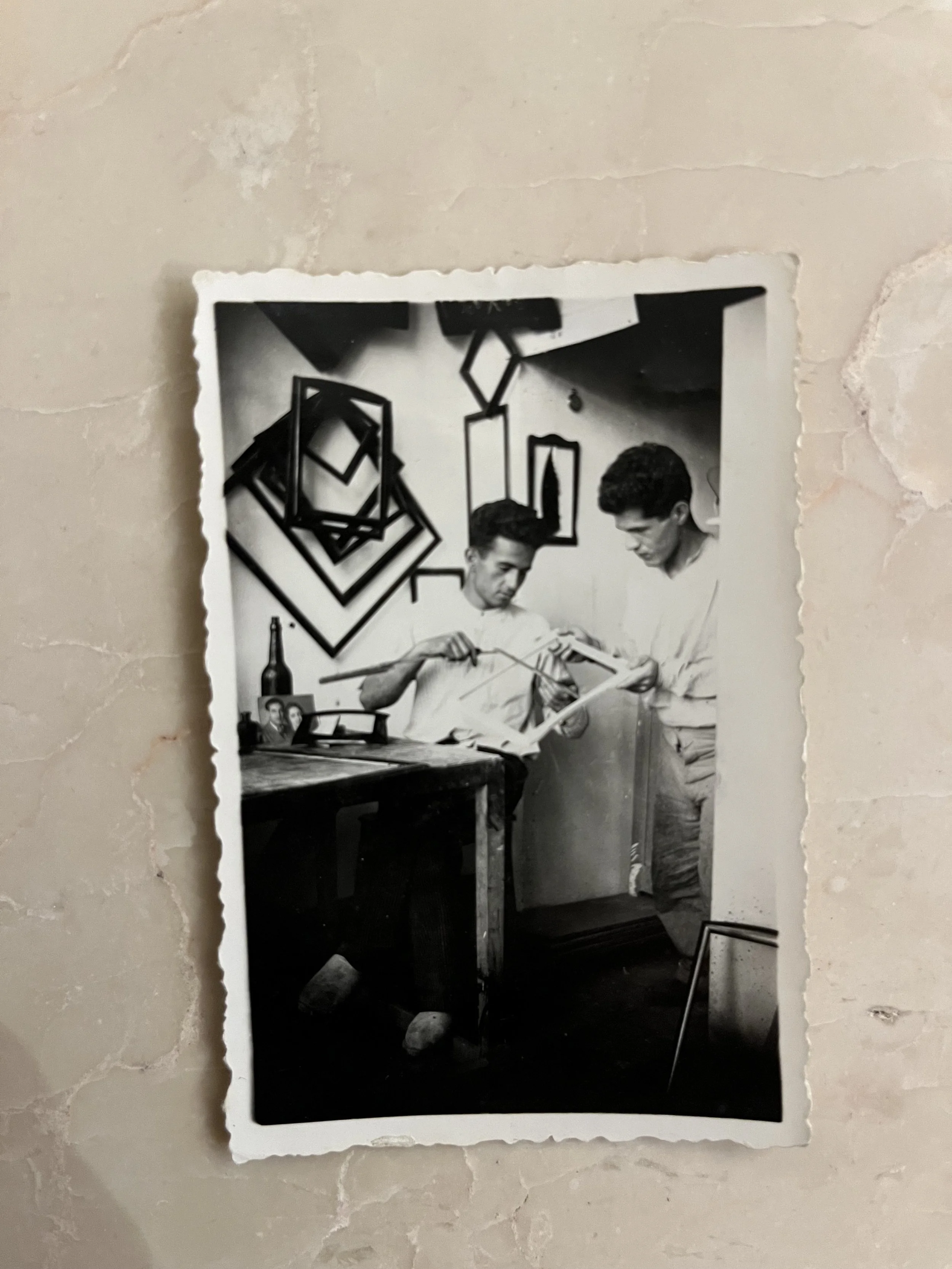 My grandfather on the left , at his atelier.